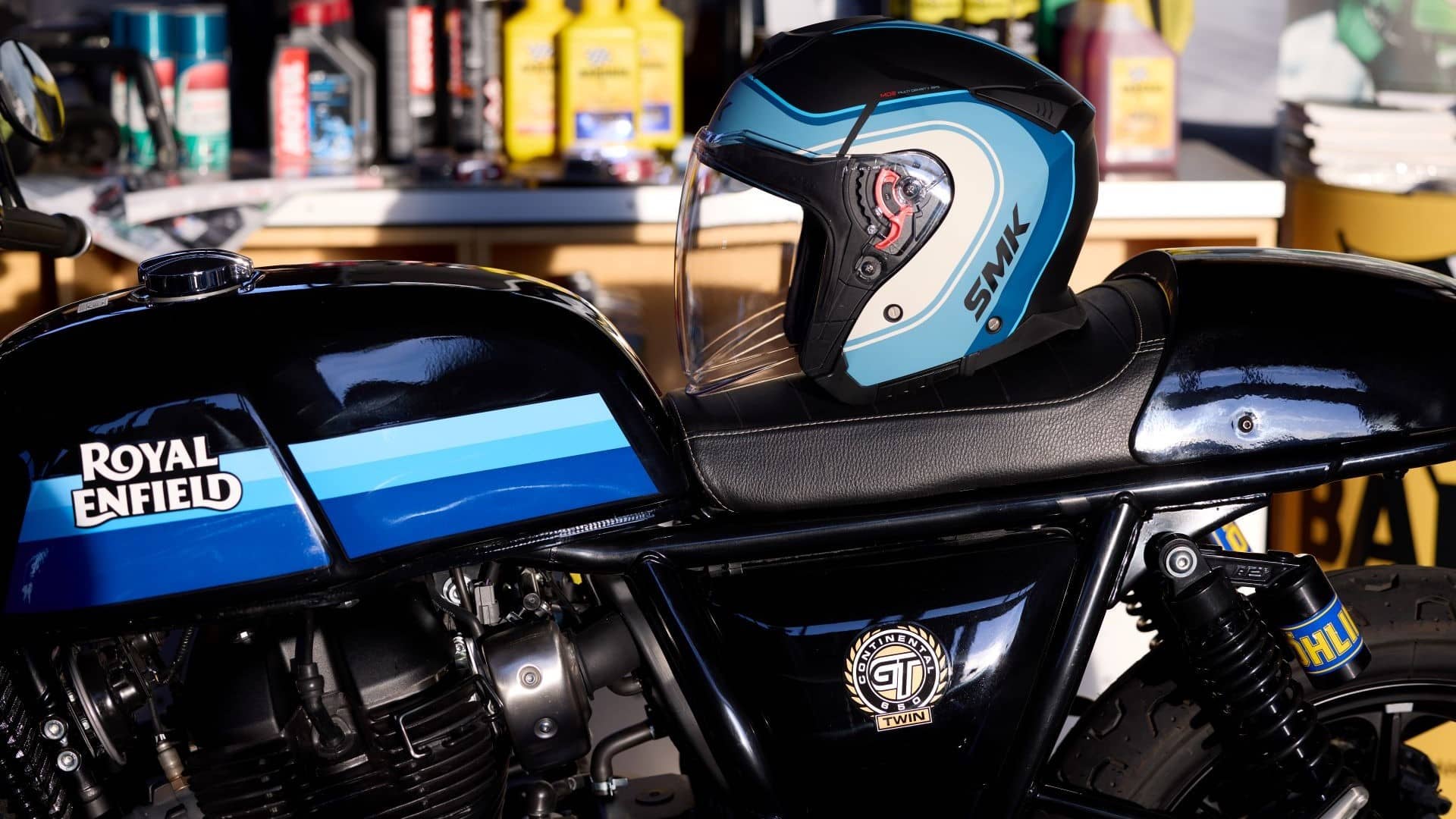 The internal retractable sun visor, which can be operated by an easy gesture, provides comfort during light-changing conditions. An efficient ventilation system with multiple air vents and air exhausts at the back, provides maximum comfort to the rider during long journeys and extreme weather conditions.